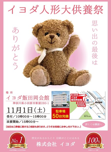 2025年11月1日(土) イヨダ飯田岡会館にて「人形供養祭」を開催いたします。